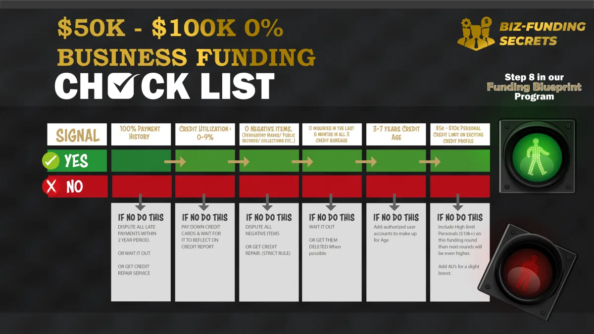 Get this One Page Check list that startup Coaches & Real Estate Investors use to Acquire $50k-$100k in 0% interest funding in 30 Days or less